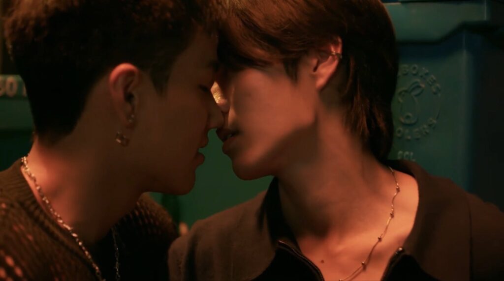 Boston(Neo)のスタジオからバイクでTua(Gawln)を送ってきたArnold(Joss)。